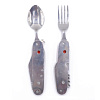 Комплект туриста со столовыми приборами - отличное решение для повседневных хозяйственных работ и туристических походов. Все инструменты из высококачественной нержавеющей стали. Длина: 11 см, вес: 140 гр.