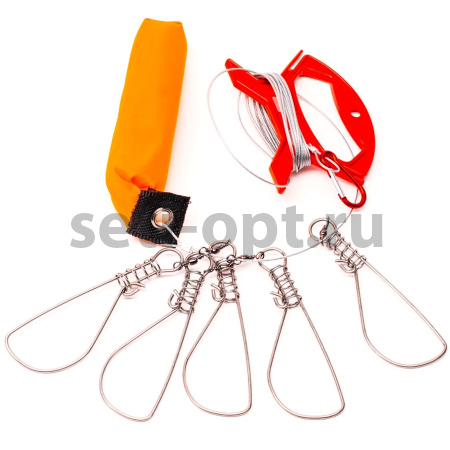 Кукан, 5 карабинов на тросе (поплавок, мотовило)