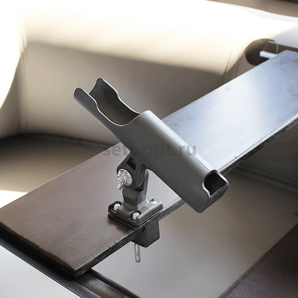 Струбцина позволяет закрепить удочкодержатель на любой жесткой поверхности (лавка, транец и т.п.) толщиной до 30 мм.