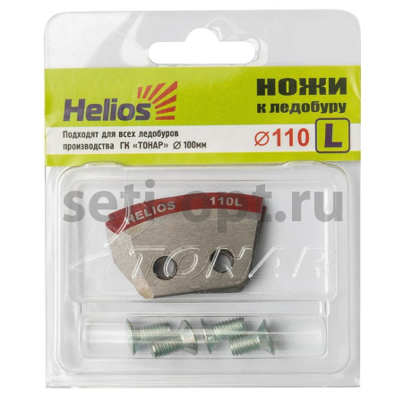Характеристики: Производитель: ГК Тонар Модель: NLH-110L.SL Материал: высокоуглеродная легированная сталь. Высокая твердость: 55-60 HRC. Рекомендовано для сухого льда. В комплекте с ножами идут 4 крепёжных винта. Упакованы в блистерную упаковку. Ножи HELIOS 110(L) подходят для ледобуров: Торнадо М2(ф100),Торнадо М2(ф100) МИНИ, Торнадо М2 Lady(ф100), серии буров ЛР-100, ЛР-100Д, ЛР-100С, ЛР-100СД, HS-110D, ЛР-100СКС СОТКА КАЗАНЦЕВА СПОРТ, ЛР-100ЛС LadyBur. Определить такие ножи очень легко: на их режущей кромке имеется красная полоса с логотипом TONAR.SU, которую хорошо видно через новую блистерную упаковку ножей.