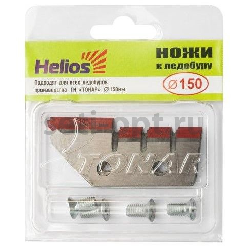 Ножи к ледобуру полукруглые диаметром 130 мм. Полукруглая форма ножей является универсальной и подойдёт для сверления различных видов льда. Отсутствие каких-либо резких углов обеспечивает плавное сверление при минимальном усилии. В комплекте с ножами идут 4 крепёжных винта. Материал: высокоуглеродная легированная сталь. Высокая твердость – 55-60 HRC. Ножи Helios HS-130 подходят для всех ледобуров производства "ТОНАР" с диаметром 130 мм и левым вращением. Определить такие ножи очень легко: на их режущей кромке имеется красная полоса с логотипом TONAR.SU, которую хорошо видно через новую блистерную упаковку ножей.