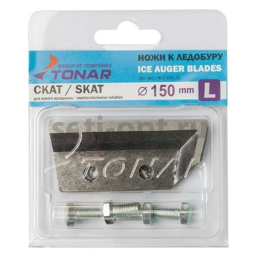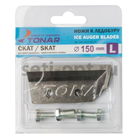Комплект ножей к ледобуру ЛР-130 "СКАТ" c левым вращением. Ножи отлично работают по мокрому льду! Преимущества: - Не откручиваются при бурении. - Легко перетачиваются. - Повышенная стойкость лезвия. - Комплектуются болтами. - Низкая цена! Материал: сталь марки Ст65Г. После закалки ножи имеют твердость 55-60 HRC. * С сентября 2016 года ножи СКАТ выпускаются в новой блистерной упаковке.
