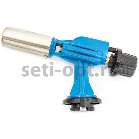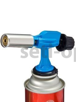 Горелка одевается на газовый баллон с помощью специального соединения. Искра подается курком-пьезой. Интенсивность пламени настраивается регулятором.