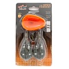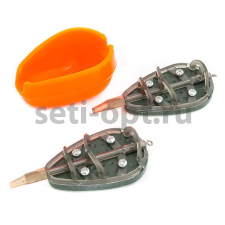 Кормушки укомплектованы быстросъемным коннектором, позволяющим мгновенно заменить поводок или кормушку, а также резиновой трубкой, которая защищает поводок от запутывания в полете. В центральной части данных кормушек имеется широкий проем, за счет чего их можно смело использовать даже с крупными приманками. В комплекте идет классическая, идеально подходящая для кормушек пресс форма.