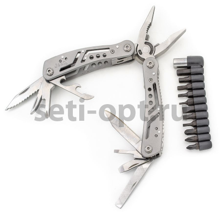 Многофункциональный инструмент — отличное решение для повседневных хозяйственных работ и туристических походов. Все инструменты из высококачественной нержавеющей стали. Эргономичная рукоятка обеспечивает удобство и безопасность использования. Режущие кромки ножей остро заточены. В комплект входит нейлоновый чехол для удобства хранения. .