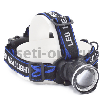 Фонарь налобный имеет три режима свечения: 100%, 50%, «стробоскоп». Светодиод обеспечивает яркий широкий луч. Функция зуммирования позволяет направить луч света на объект, находящийся на значительном удалении. В комплекте идут две аккумуляторные батареи, которые закреплены отдельно от фонарика; они располагаются в затылочной части в коробе с мягкой резиновой крышкой. Короб с батарейками питает фонарик через провод. Фонарь отлично подходит для использования в поисково-спасательных работах, в походах, на охоте и рыбалке.