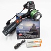 Фонарь имеет 3 режима работы: яркий свет, тусклый свет, стробоскоп "мигание". Светодиод обеспечивает яркий широкий луч.  В комплекте идут две аккумуляторные батареи, которые закреплены отдельно от фонарика; они располагаются в затылочной части в коробе. Короб с батарейками питает фонарик через провод. Фонарь отлично подходит для использования в поисково-спасательных работах, в походах, на охоте и рыбалке.