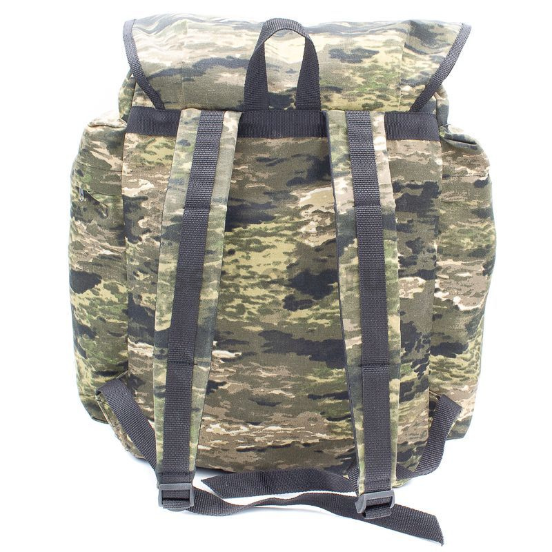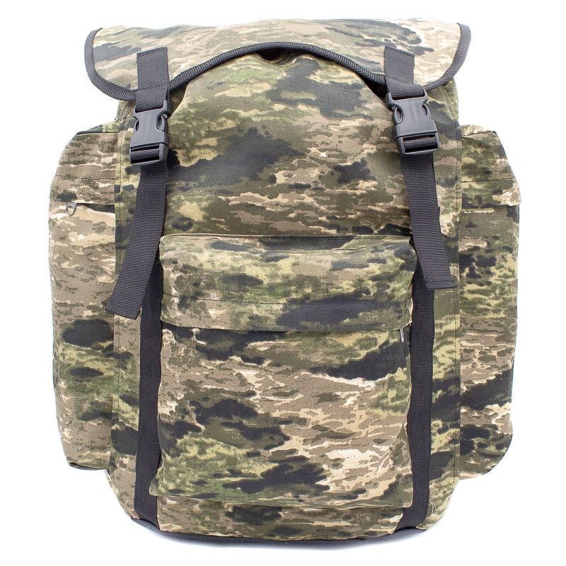 Изготавливается из смесовых тканей – в состав которых входит хлопок и полиэфирное волокно, обладает частичными водоотталкивающими свойствами, благодаря водоотталкивающей обработке с лицевой стороны, не шуршит и дышит. При изготовлении рюкзака используется высококачественная пластиковая фурнитура российского производителя. Рюкзак рекомендуется использовать для любительского туризма, охоты, рыбалки и отдыха.