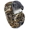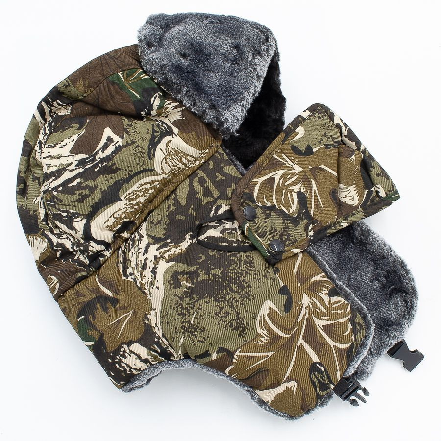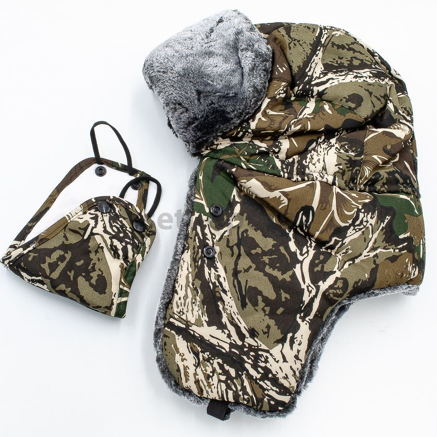 Шапка-ушанка комбинированная с ветрозащитной маской. Верх шапки выполнен из водонепроницаемого материала. Внутренний слой – синтепон для лучшей теплоизоляции. Подкладка выполнена из одностороннего антипиллингового флиса. Лицевые детали козырька, назатыльника и ушек из искусственного меха. Ушки застегиваются при помощи регулируемой застежки-"фастекс".
