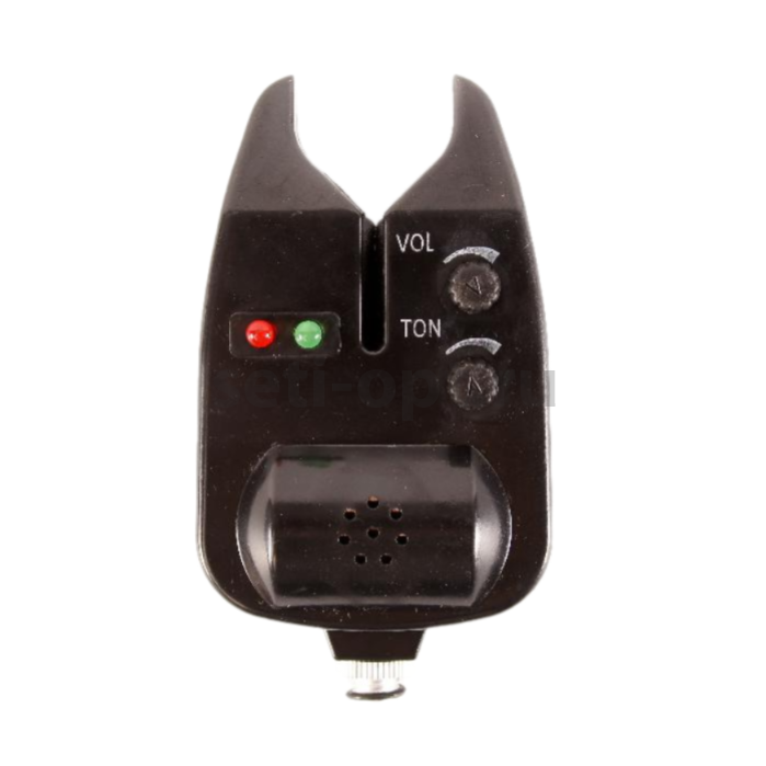 Электронный сигнализатор оснащен звуковым и световым сигналом поклевки. Интенсивность и громкость сигнала можно регулировать двумя ручками - регуляторами, которые расположены на передней панели сигнализатора.