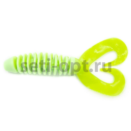 Этот твистер имеет необычную геометрию тела: оно достаточно объемное за счет выступающих по всей его длине "ребер", которые при проводке создают оригинальный шумовой эффект. Оканчивается приманка двумя серповидными хвостами, направленными друг на встречу другу. В воде Тurbo имеет очень насыщенную и заметную игру. Из-за особенностей строения тела приманка имеет повышенную проходимость при ловле в корягах с офсетным крючком. Позволяет использовать себя не только в классическом джиге, но и при ловле на поводковые оснастки.